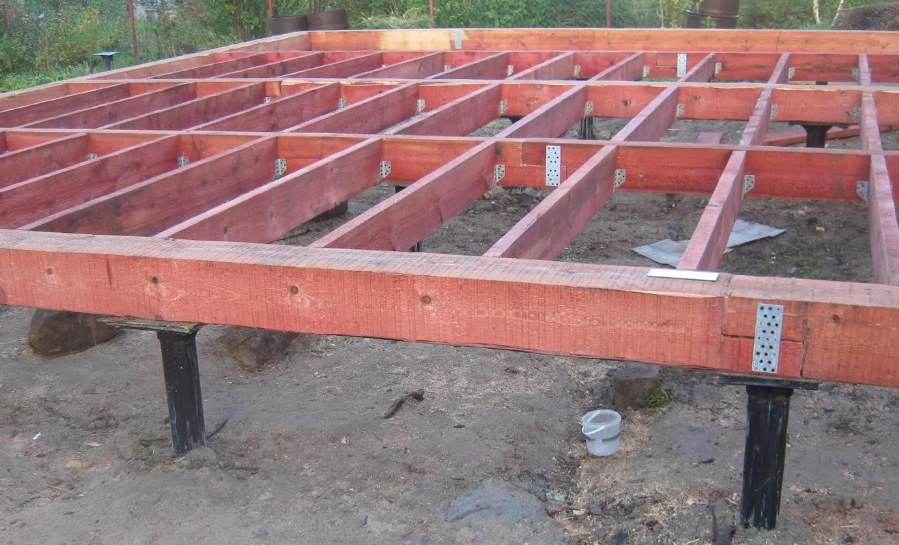 Сборка стенового комплекта: - Установка ростверка - Установка лаг пола - Сборка стенового материала - Монтаж межэтажных перекрытий